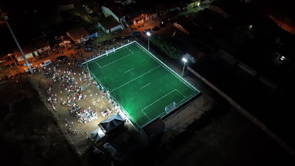 A programação foi encerrada com o descerramento da placa inaugural, o pontapé simbólico e um jogo amistoso entre equipes locais, marcando oficialmente o início de uma nova fase para o esporte no distrito.