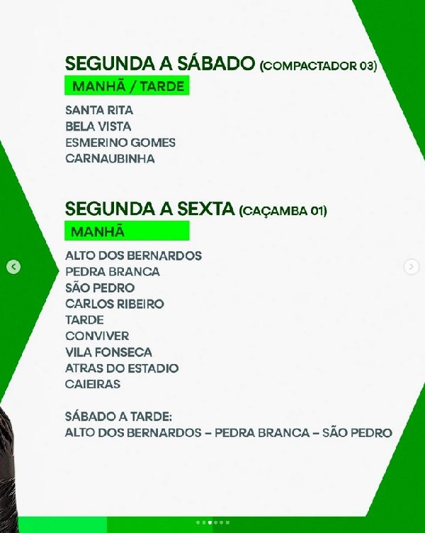Prefeitura divulga novo cronograma oficial da coleta domiciliar