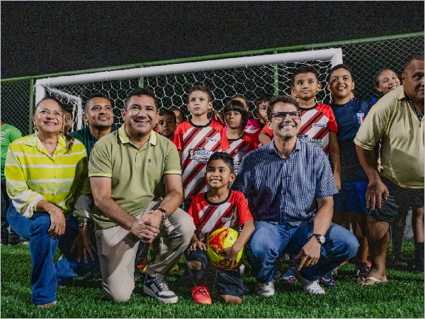 A programação foi encerrada com o descerramento da placa inaugural, o pontapé simbólico e um jogo amistoso entre equipes locais, marcando oficialmente o início de uma nova fase para o esporte no distrito.