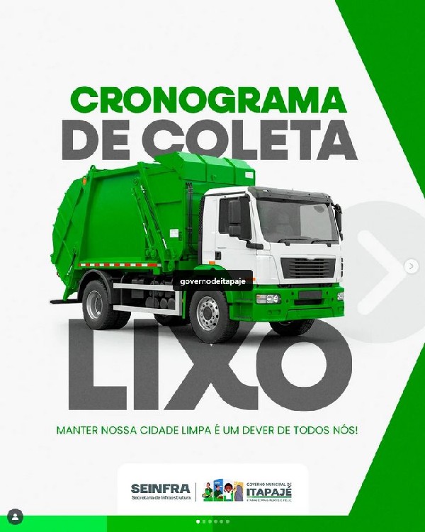 A Prefeitura, por meio da equipe responsável pela limpeza pública, disponibiliza o cronograma atualizado da coleta domiciliar, garantindo que a população possa se organizar com mais tranquilidade e contribuir para manter a cidade limpa e bem cuidada.