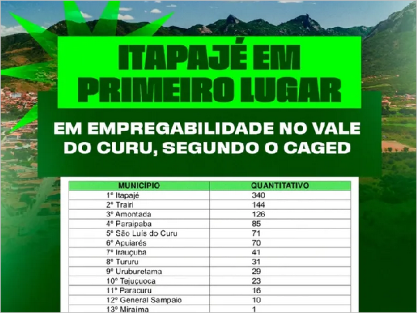 02-10-2025Levantamento aponta Itapajé como destaque regional na geração de empregos formais e fortalecimento do desenvolvimento econômico